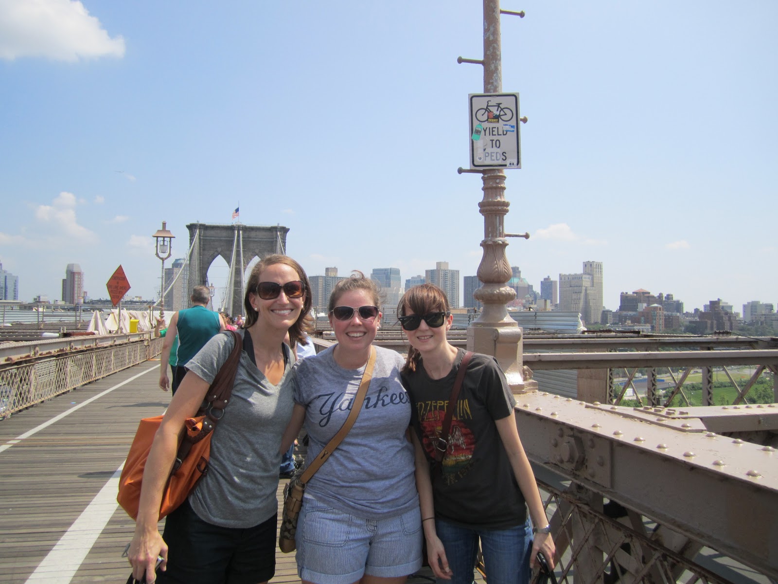 Walking across the Brooklyn Bridge.